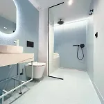 Det här boendet har ett badrum med hårtorkar, badlakan och handdukar. Dessutom finns det en separat toalett och en dusch.